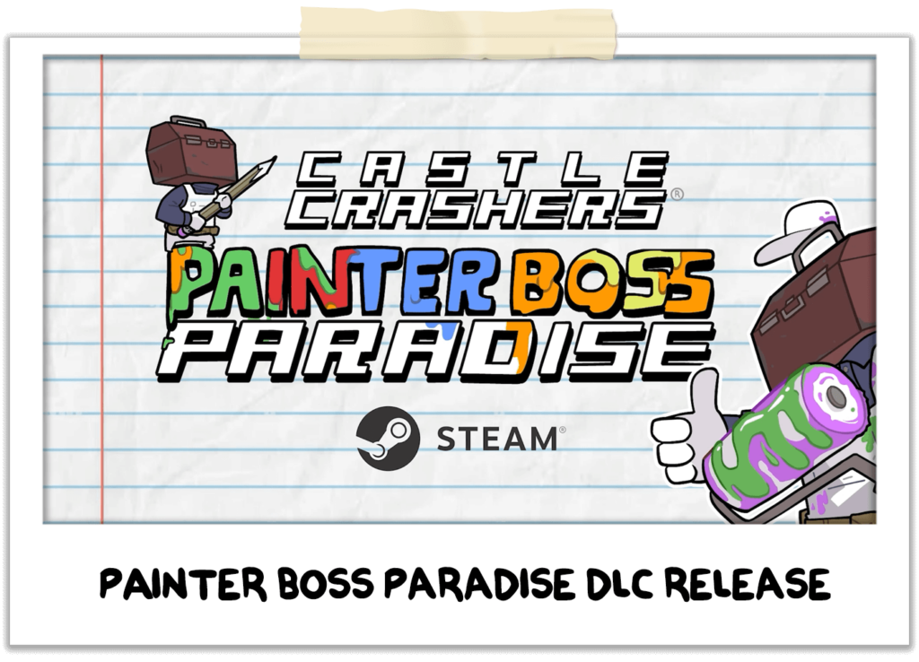 We launched our first DLC for Castle Crashers in 13 years, Painter Boss Paradise, on August 6th! Since then, the Steam Workshop has been flooded with over 40,000 community creations… WOW! You’ve truly outdone yourselves creatively, and we’ve loved getting to showcase your custom knight skins during our developer streams. We will officially NEVER run out of characters to play in this game!