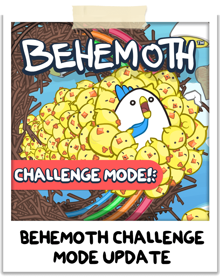 BEHEMOTH received its community-requested One Hit Challenge Mode back in January! We had a blast playing against others live on air, unlocking over 200 different chicken cosmetics and competing in the daily leaderboards! If you haven’t checked out BEHEMOTH yet, you can find our infinite flapper on Steam here!